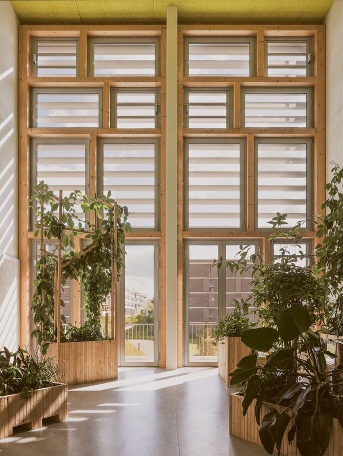 Im Rahmen des Projekts Ecoquartier Vergers wurde aplantis mit der Innenraumbegrünung des Wintergartens beauftragt.