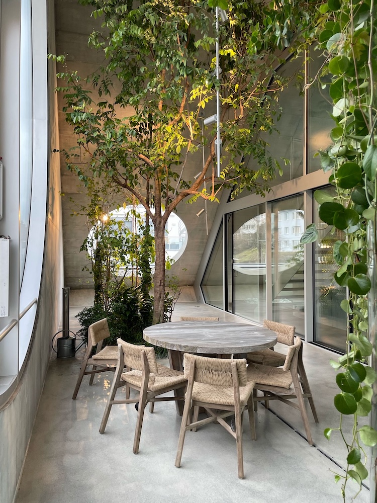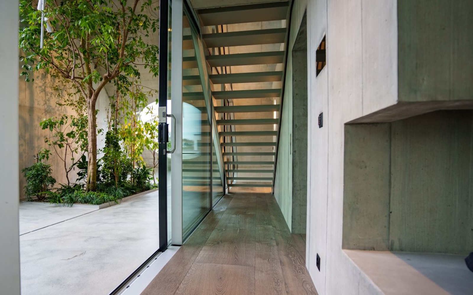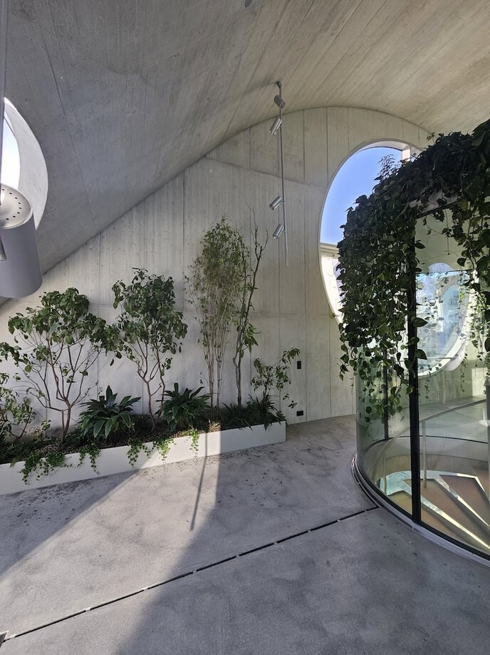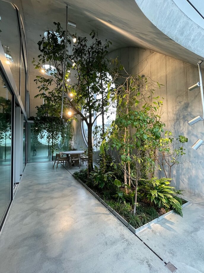 Reduzierte Materialien wie Sichtbeton unterstützen die ruhige, klare Atmosphäre und lassen die Pflanzen visuell wie räumlich wirken.
