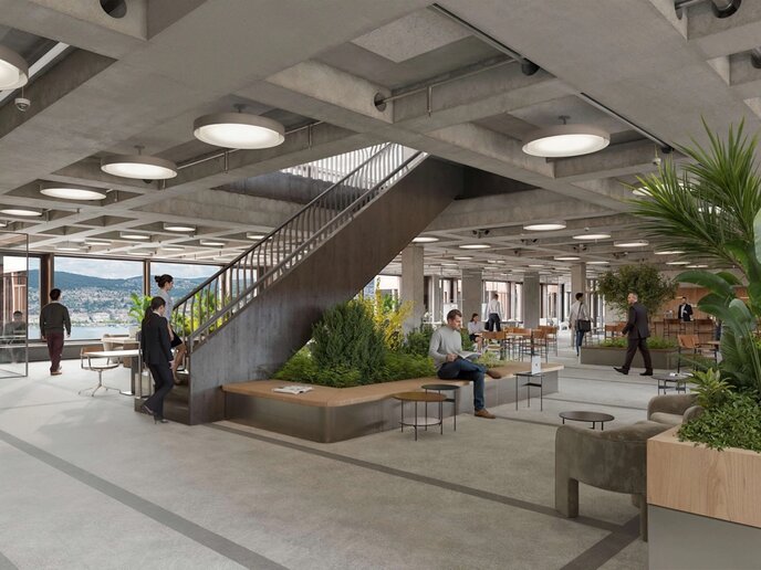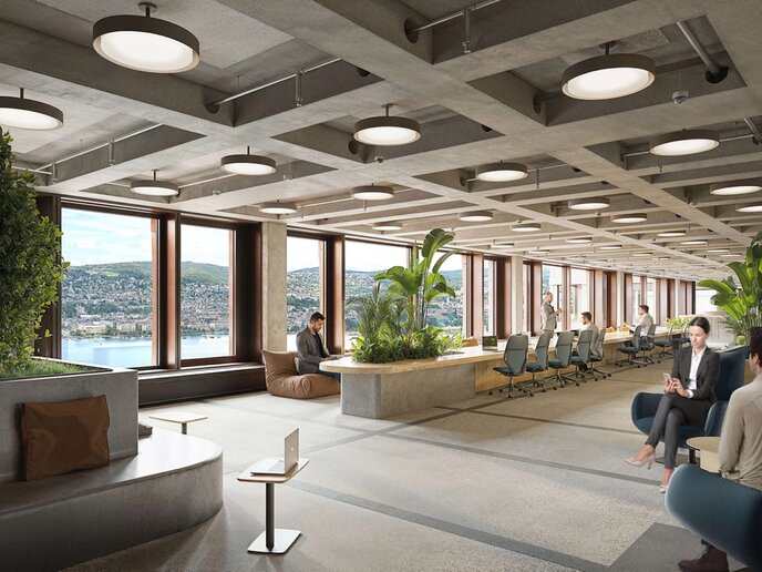 Mit dem Neubau „Lake“ entwickelt Swiss Re ihren Hauptsitz am Mythenquai zu einem nachhaltigen Campus. Der Ersatz des ehemaligen „Mythenschlosses“ schafft moderne Arbeitswelten und erfüllt hohe ökologische Standards.
