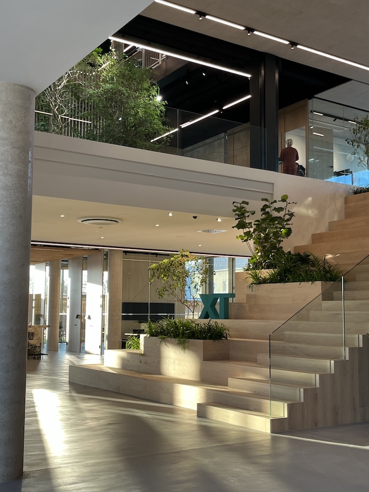 Der neue Hauptsitz der x-tention Informationstechnologie GmbH in Wels, Österreich, setzt Massstäbe für zukunftsorientierte Arbeitswelten. Mit dem sogenannten xt-campus entsteht ein Arbeitsplatz, der Technologie, Nachhaltigkeit und Wohlbefinden vereint. Ein herausragendes Element dieses Konzepts sind die beiden Waldlichtungen, die als grüne Oasen im Büroalltag fungieren. Sie wirken aktiv auf das Raumklima, erhöhen die Luftfeuchtigkeit, verbessern die Luftqualität und tragen zur Schallreduktion bei uns lassen so ein Arbeitsumfeld entstehen, das sowohl gesundheitliche als auch akustische Vorteile bietet.